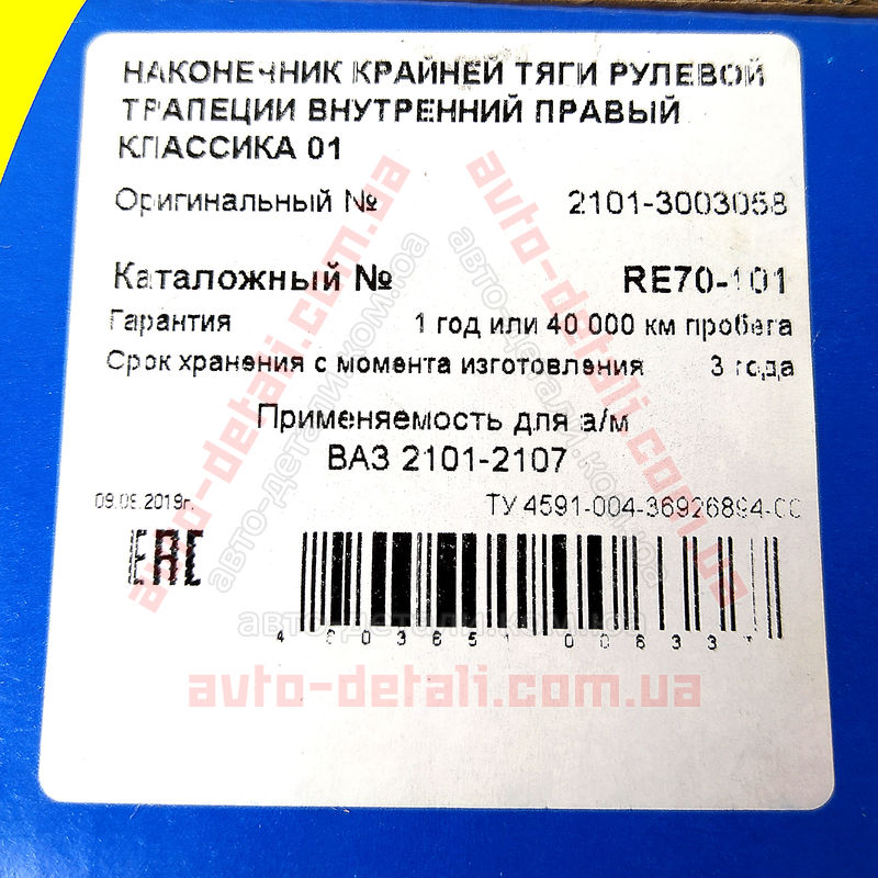 Наконечник рулевой тяги длинный правый