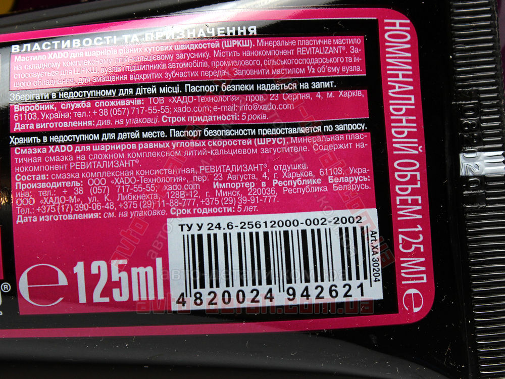 Содержит ревитализант. Компенсирует текущий износ деталей. Лучшая на сегодняшний день смазка для ШРУС.