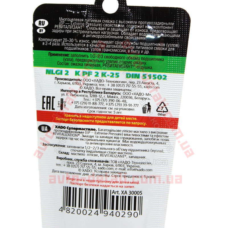 Применять суперсмазку ХАДО просто – достаточно заполнить смазочным материалом половину свободного объема узла, предварительно удалив используемую ранее смазку.