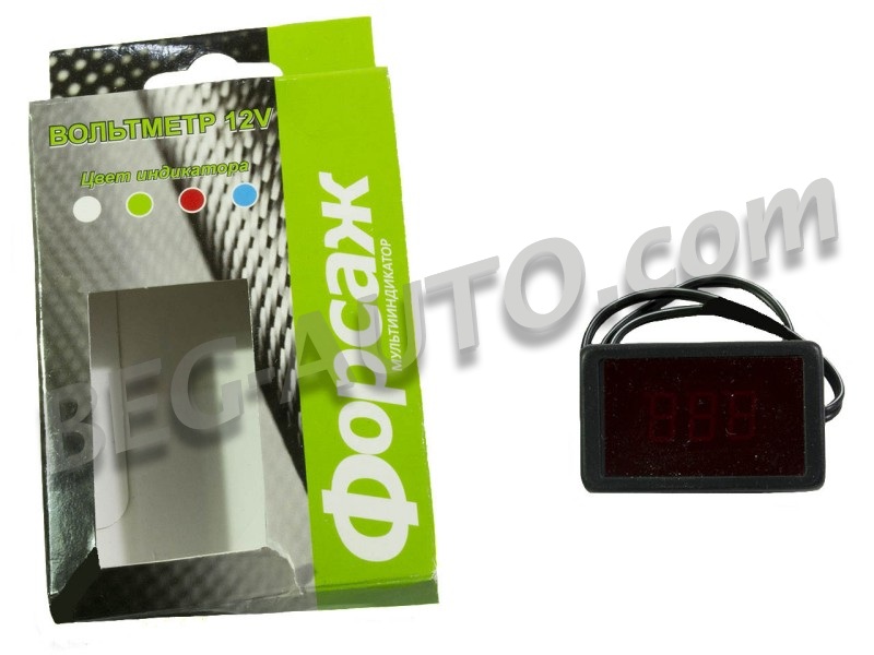 Вольтметр цифровой на скотче с проводом - 12 Вольт ФОРСАЖ
