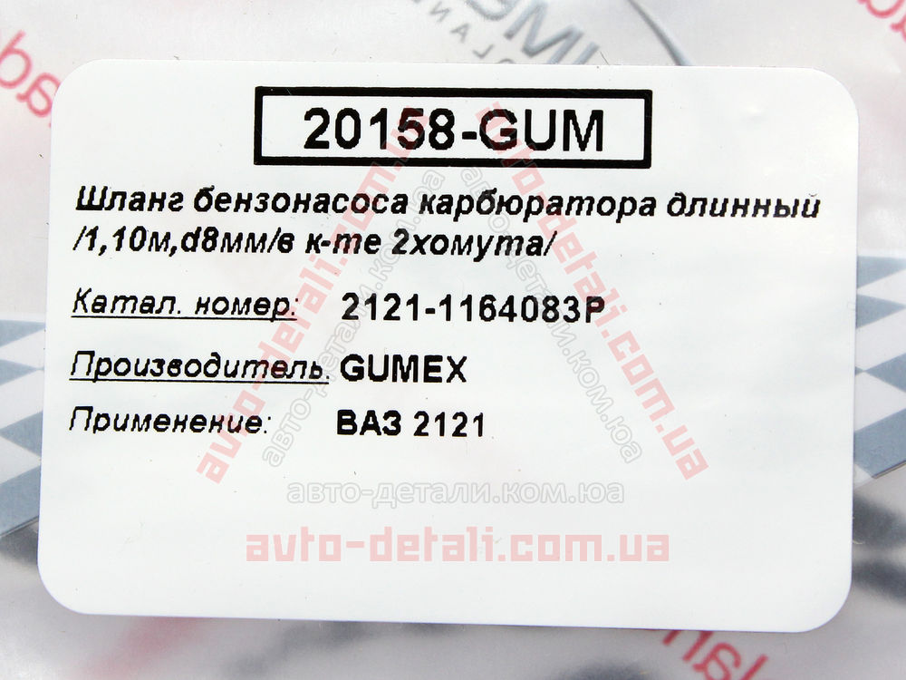 Шланг топливный (насос-карбюратор) 1100мм с хомутами ВАЗ 2121 (2101-2107) GUMEX (20158)