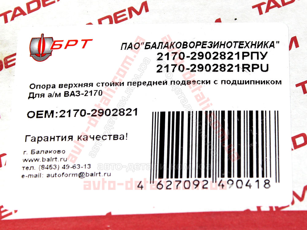 Купить Опора стойки передней подвески ВАЗ 2170, 2171, 2172 (Приора) с подшипником БРТ (2170-2902821РПУ)